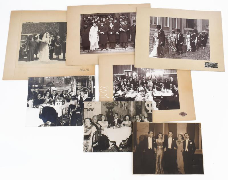 cca 1930-1940 Társasági összejövetelek, szilveszteri parti, esküvő fotói, 7 db nagyméretű fotó, többségük jelzett (Stemmer, Kredatus Károly, Schäffer Gy.), változó méretben és állapotban