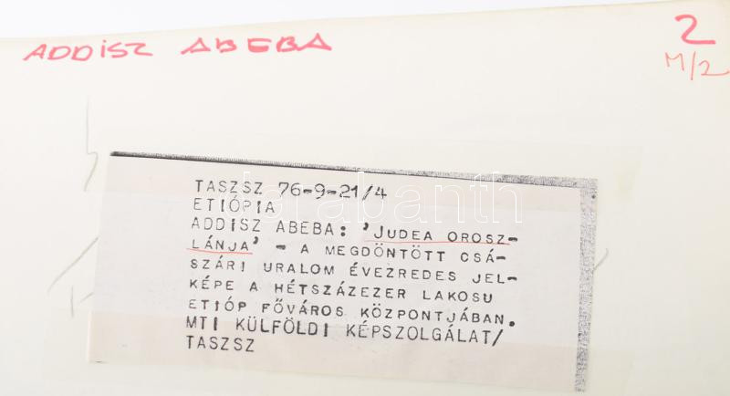 Leírás: cca 1976 Addisz-Abeba, Etiópia, 4 db sajtófotó, MTI Külföldi Képszolgálat, a hátoldalon feliratozva, 18x13 cm