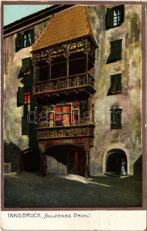 Leírás: 1913 Innsbruck (Tirol), Goldenes Dachl. Heliocolorkarte Ottmar Zieher. Emb. (pinhole)