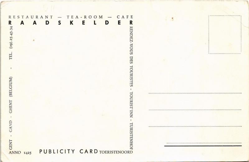 Leírás: Ghent, Gent, Gand; Restaurant Raadskelder, Tea-Room, Café (EB)