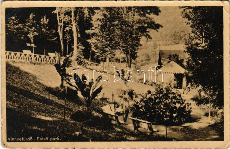Leírás: 1927 Vihnye, Vihnyefürdő, Kúpele Vyhne; Felső park. Joerges Ágost özv. és fia kiadása / spa, park (kis szakadás / small tear)