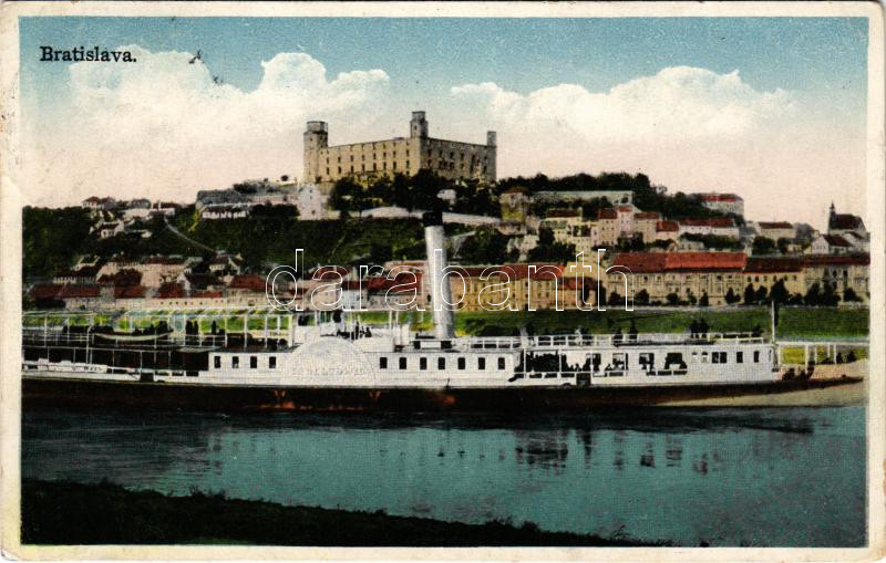 Leírás: 1928 Pozsony, Pressburg, Bratislava; vár, CARL LUDWIG lapátkerekes gőzhajó, gőzös / castle, steamship (r)