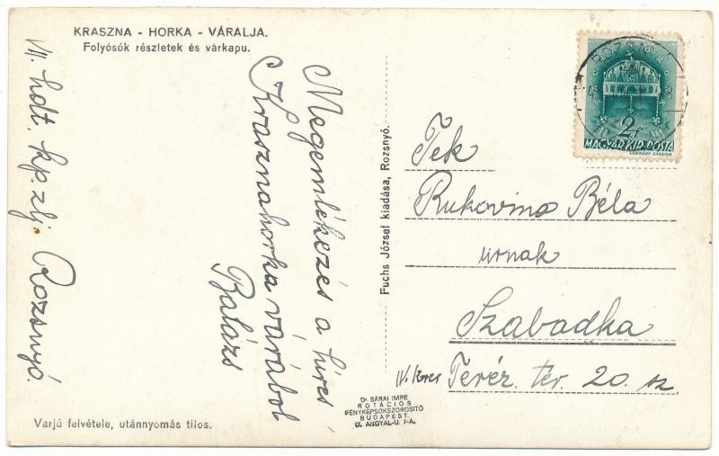 1941 Krasznahorkaváralja, Krásnohorské Podhradie; folyósó részletek és... https://www.darabanth.com/hu/484-Gyorsarveres/484.0/Kepeslapok/Felvidek~2000007/1941-Krasznahorkavaralja-Krasnohorske-Podhradie-folyoso-reszletek-es-varkapu-Varju-felvC3~II3254322