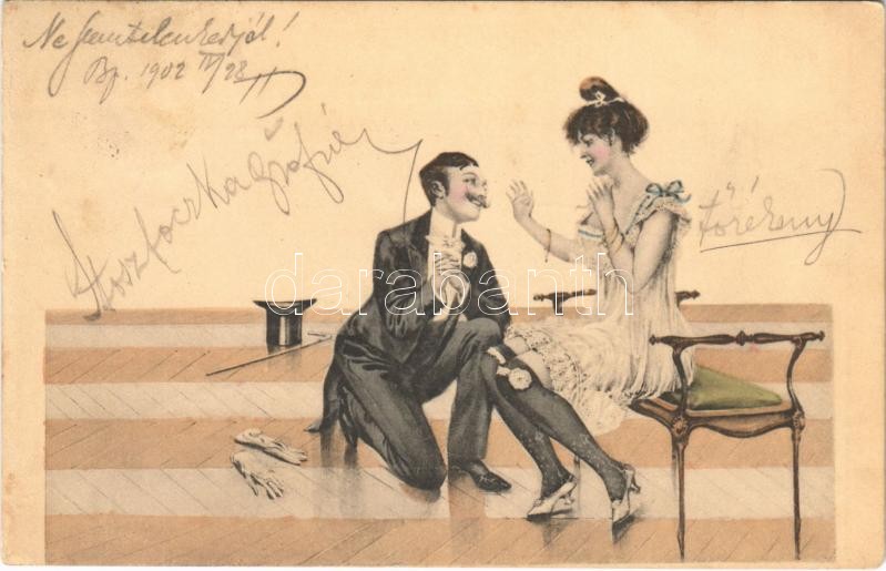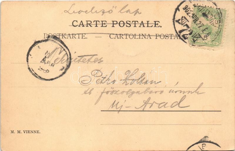 1902 Romantic couple, lady art postcard. M. M. Vienne (EK) https://www.darabanth.com/hu/484-Gyorsarveres/484.0/Kepeslapok/Holgyek~2000030/1902-Romantic-couple-lady-art-postcard-M-M-Vienne-EK~II2370412