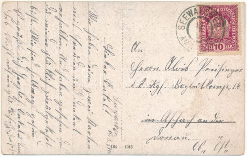 Leírás: 1918 Der teste Glaube an die eig'ne Kraft / WWI Austro-Hungarian K.u.K. military art postcard, soldier's farewell (EK)
