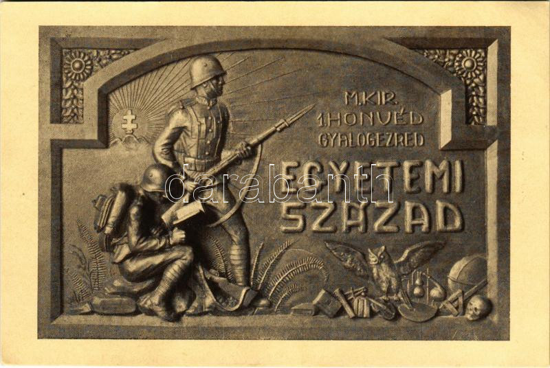 M. Kir. 1. Honvéd Gyalogezred Egyetemi Század plakettjének a képe. Hát... https://www.darabanth.com/hu/484-Gyorsarveres/484.0/Kepeslapok/Katonai~2000035/M-Kir-1-Honved-Gyalogezred-Egyetemi-Szazad-plakettjenek-a-kepe-Hatoldalon-Tea-estelyre-meg~II3307354