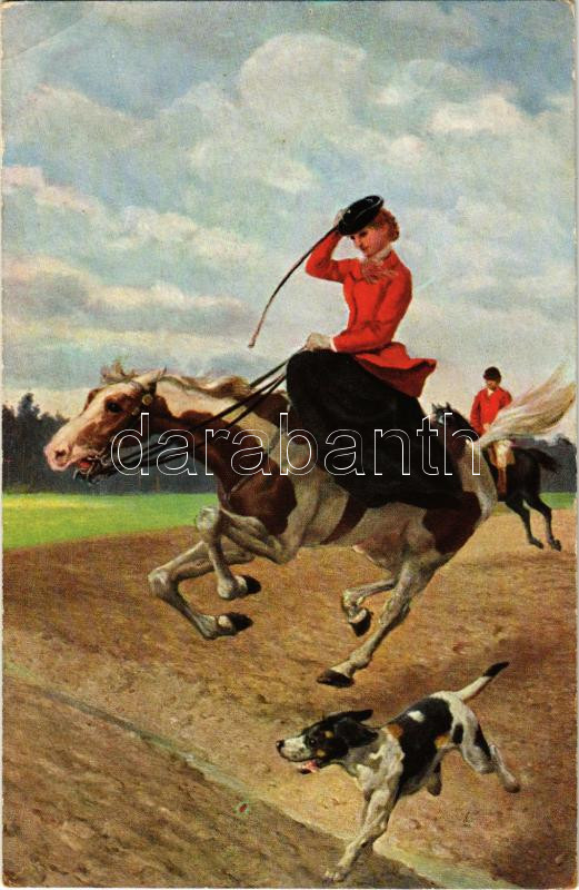 1907 Woman on horseback with dog. T. S. N. Serie 718. (EK) https://www.darabanth.com/hu/484-Gyorsarveres/484.0/Kepeslapok/Lo~2000040/1907-Woman-on-horseback-with-dog-T-S-N-Serie-718-EK~II3308792