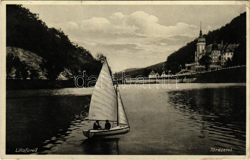 1939 Lillafüred (Miskolc), tórészlet, vitorláshajó, Palotaszálló (EK) https://www.darabanth.com/hu/484-Gyorsarveres/484.0/Kepeslapok/Magyarorszag~2000005/1939-Lillafured-Miskolc-toreszlet-vitorlashajo-Palotaszallo-EK~II3284988