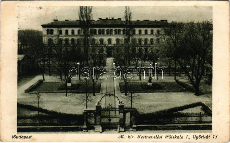 Budapest XII. M. kir. Testnevelési Főiskola, Győri út 13. https://www.darabanth.com/hu/484-Gyorsarveres/484.0/Kepeslapok/Magyarorszag~2000005/Budapest-XII-M-kir-Testnevelesi-Foiskola-Gyori-ut-13~II3166277