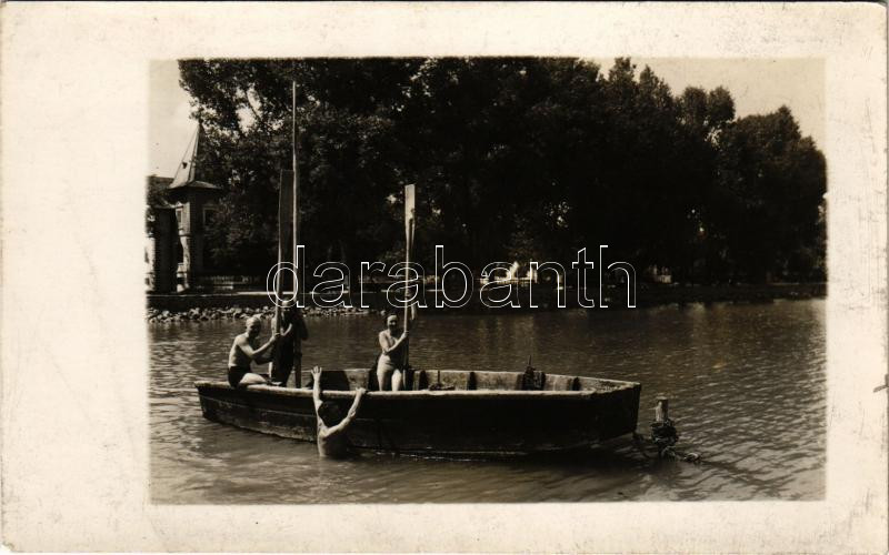 Ismeretlen település, fürdőzők csónakkal, photo https://www.darabanth.com/hu/484-Gyorsarveres/484.0/Kepeslapok/Magyarorszag~2000005/Ismeretlen-telepules-furdozok-csonakkal-photo~II3280577