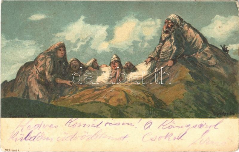 Leírás: 1908 Familie Watzmann (Bayern) / Bavarian mountain with human face, Watzmann family. Gebrüder Mühlstein. litho (EK)