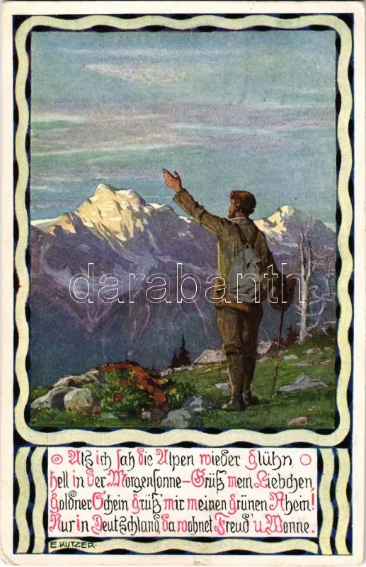 Leírás: 1911 Als ich sah die Alpen wieder glühn... / German patriotic art postcard s: E. Kutzer (EK)