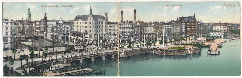 Leírás: 1906 Hamburg, Reesendammbrücke, Alsterarkaden, Alter Jungfernstieg / folding panoramacard (b)