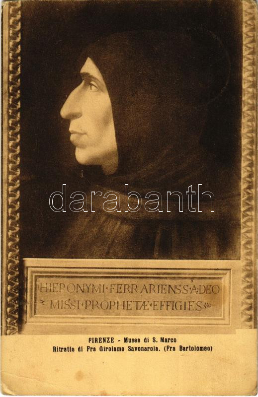 Firenze, Museo di S. Marco. Ritratto di Fra Girolamo Savonarola (Fra B... https://www.darabanth.com/hu/484-Gyorsarveres/484.0/Kepeslapok/Olaszorszag~2000100/Firenze-Museo-di-S-Marco-Ritratto-di-Fra-Girolamo-Savonarola-Fra-Bartolomeo-EB~II2894932