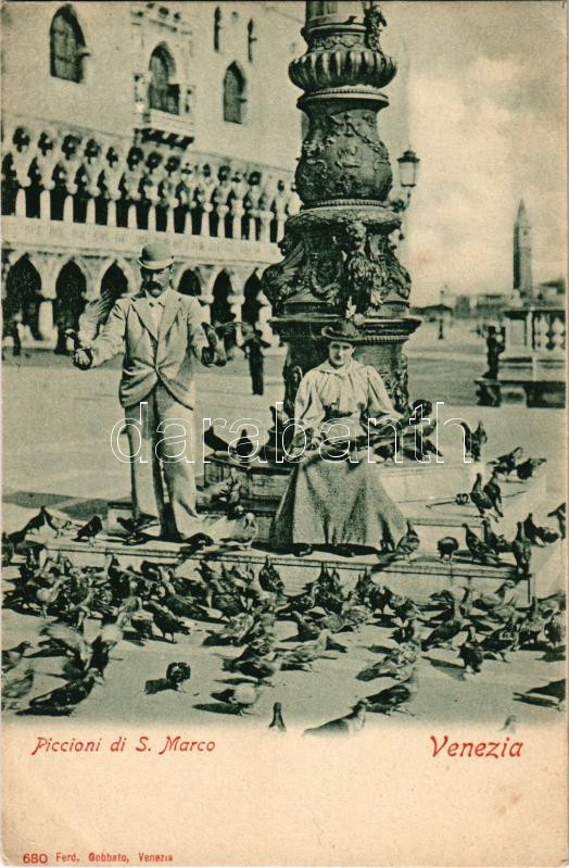 Leírás: Venezia, Venice; Piccioni di S. Marco. Ferd. Gobbato / pigeons, cathedral, square (fl)