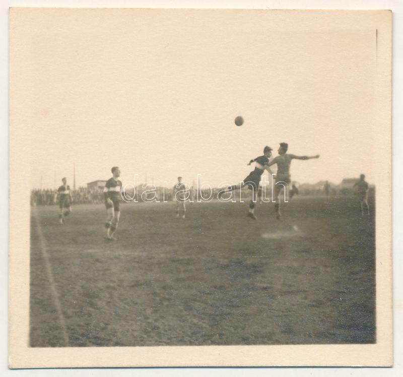 1938 RIPENSIA Temesvár - Unirea Tricolor Bucuresti (Bukarest) 7:1 labdarúgó mérkőzés, focisták a meccs közben: Dobay István, futball / FC Ripensia Timisoara - Unirea Tricolor Bucuresti football match, football players during the match. photo (6,2 x 5,7 cm) (vágott / cut)