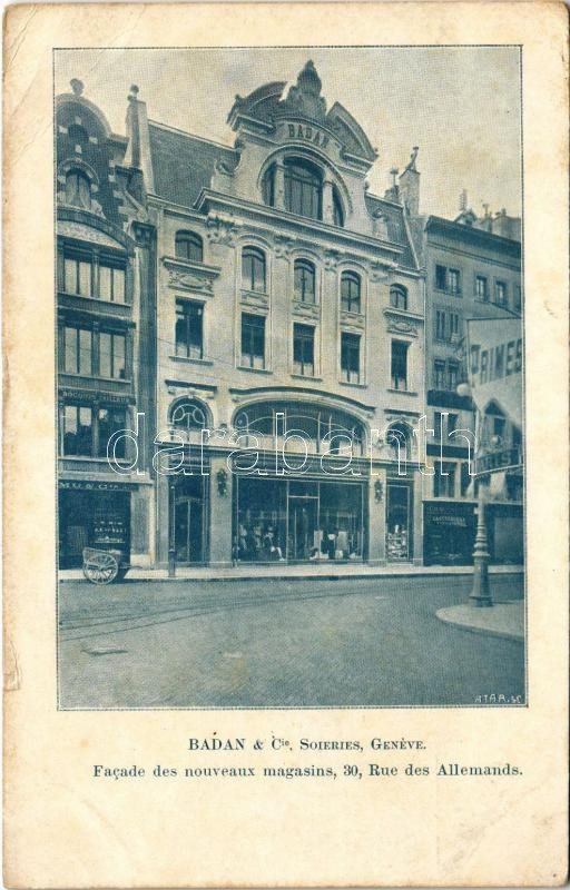 Leírás: Geneve, Geneva, Genf; Badan & Cie Soieries / silk factory and shop (EB)
