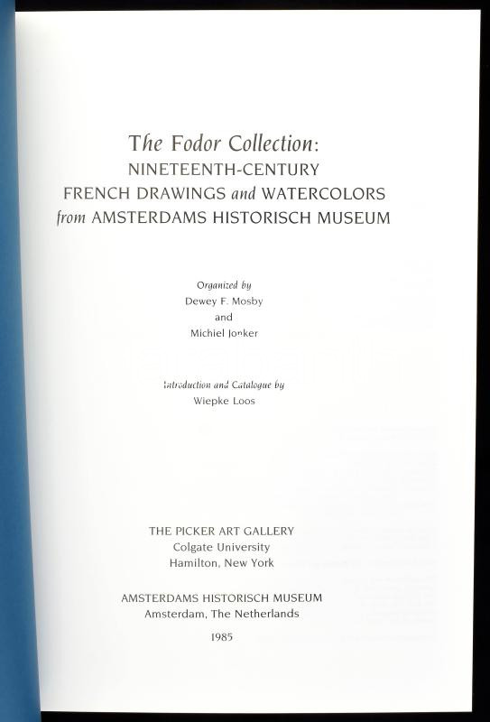 The Fodor Collection. Nineteenth-century French Drawings and Watercolors from Amsterdams Historisch Museum. Szerk.: Wiepke Loos. Hamilton, 1985. The Picker Art Gallery, Colgate University. Kiadói papírkötésben, angol nyelvű szöveggel, gazdag fotóanyaggal.