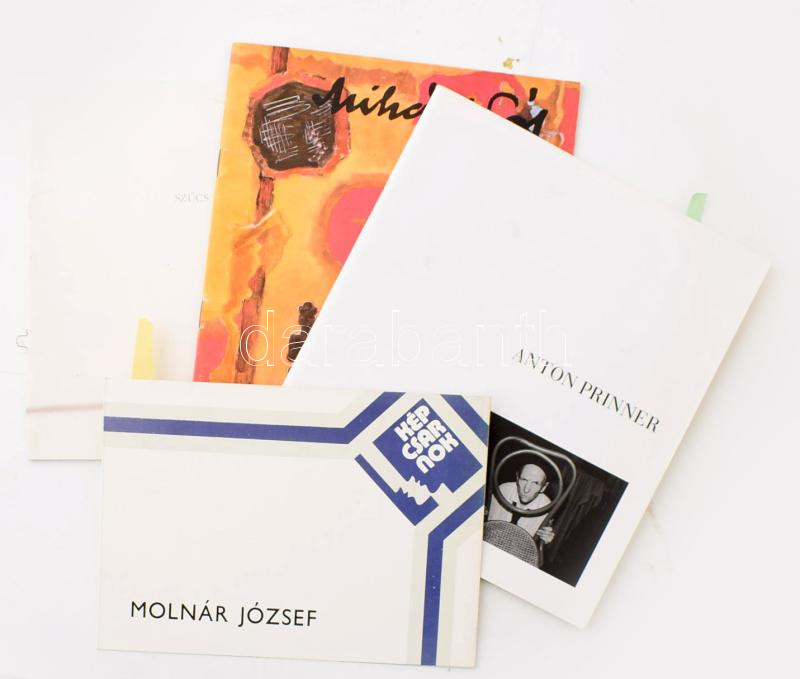 Leírás: Vegyes művészeti katalógus, 4 db: Molnár József (DEDIKÁLT!), Miháltz Pál, Szűcs Attila, Anton Prinner.