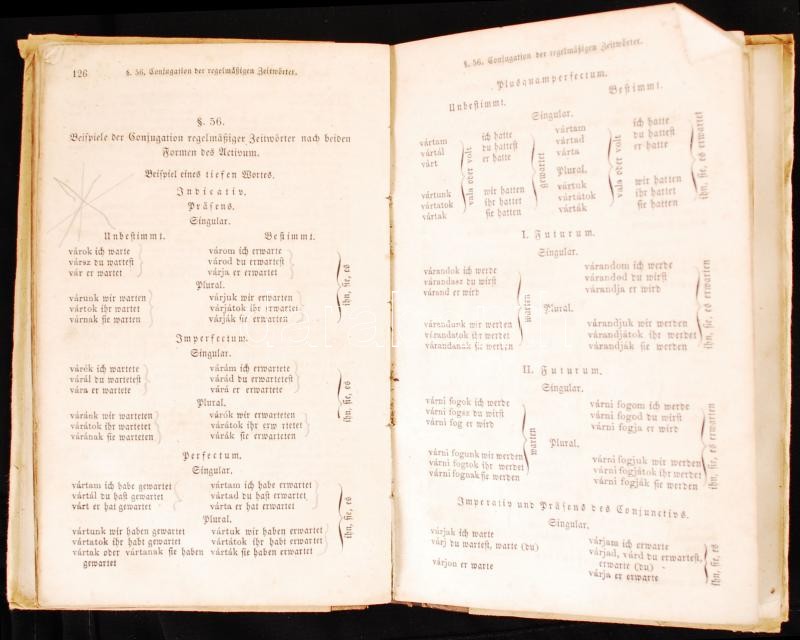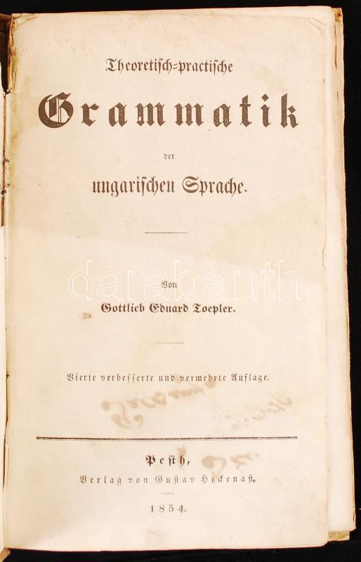 Gottlieb Eduard Zoeppler: Theoretisch-praktische Grammatik der ungarischen Sprache. Pest, 1854. Heckenast. 12 + 324 p. A dupla címlap egy része hiányos. Későbbi félbőr kötésben