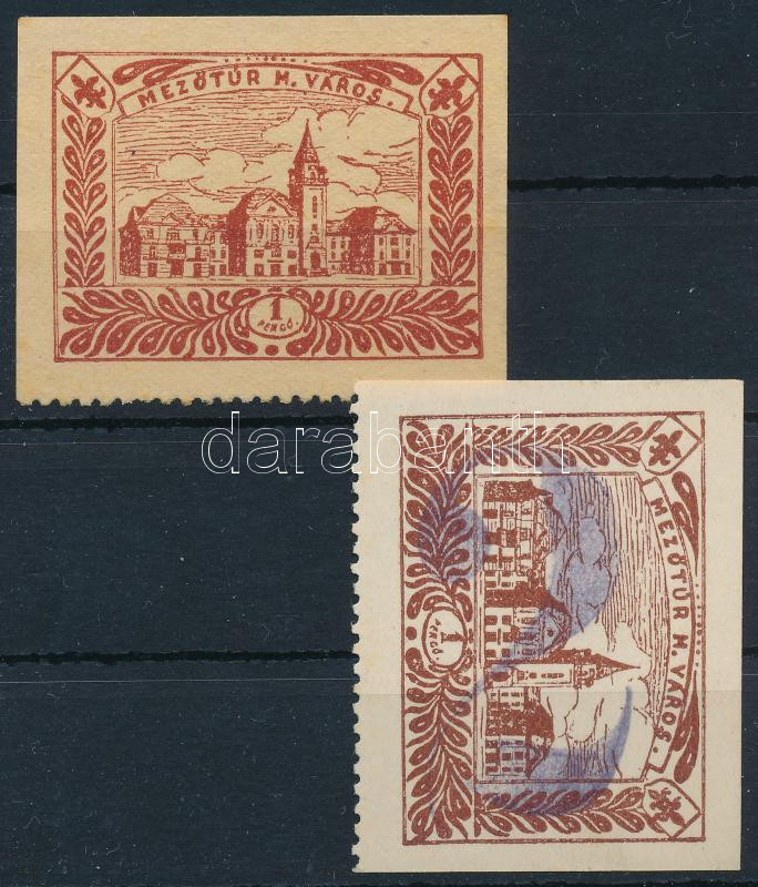 Leírás: 1943 2 db Mezőtúr városi okmánybélyeg, csak alul fogazott
