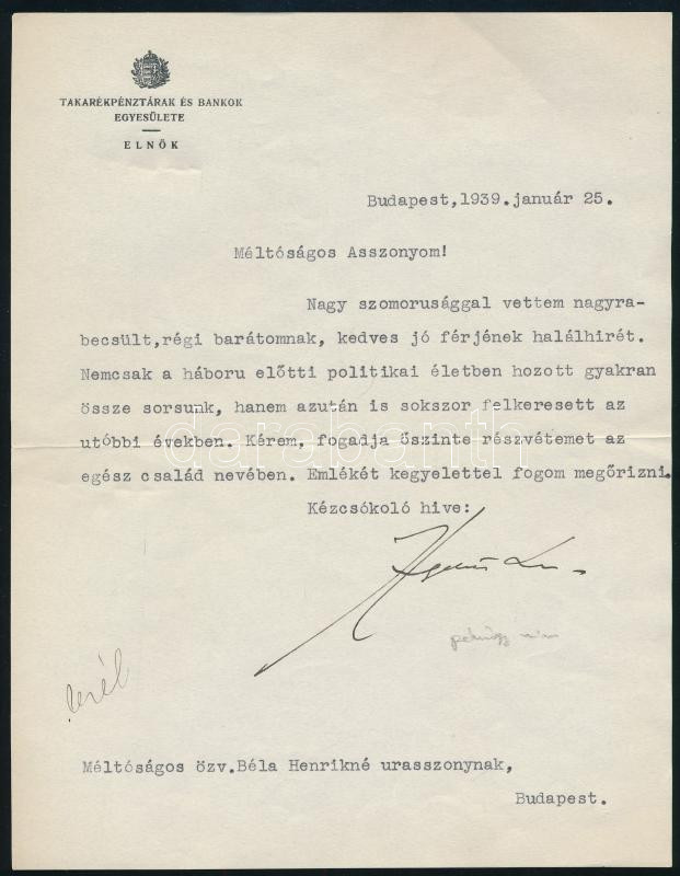 1939 Bp., Hegedűs Lóránt (1872-1943) pénzügyminiszter által aláírt lev... https://www.darabanth.com/hu/484-Gyorsarveres/484.0/Mutargy-papirregiseg-egyeb/Alairas~1500024/1939-Bp-Hegedus-Lorant-1872-1943-penzugyminiszter-altal-alairt-level~II3217350