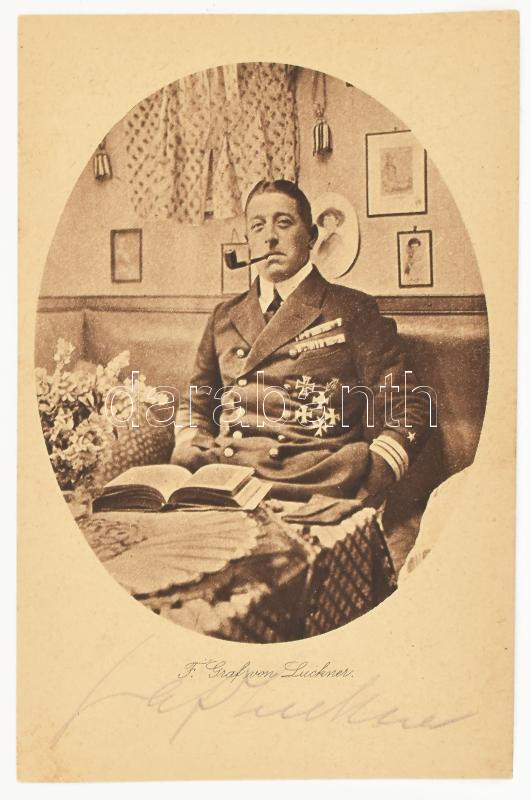 Felix Nikolaus Alexander Georg Graf von Luckner (1881-1966) német I. világháborús tengerész kapitány aláírt képeslapja képével / Autograph signed postcard