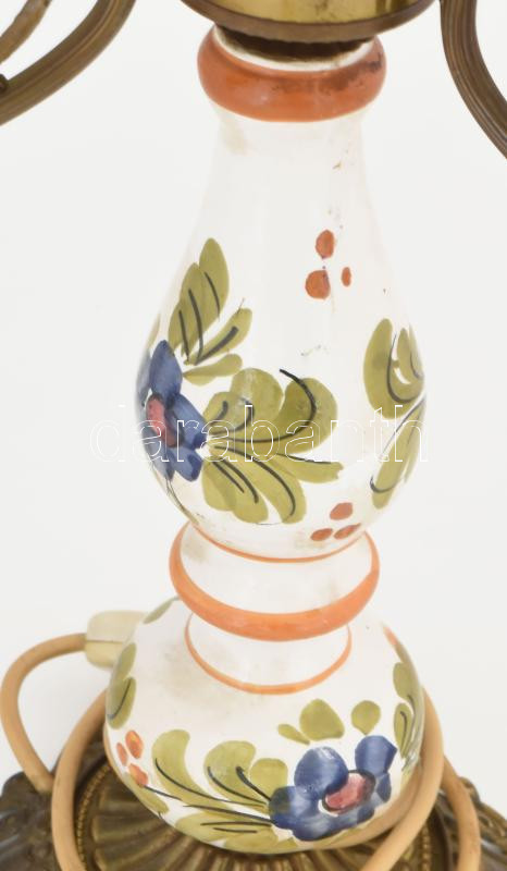 Leírás: Asztali lámpa, fajansz betéttel, m: 47 cm
