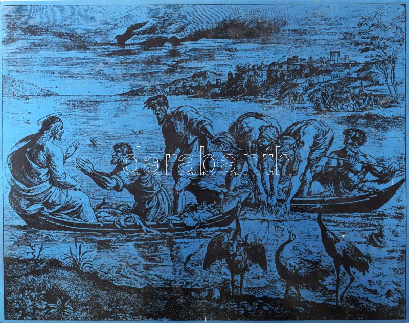 Leírás: Raffaello után: Csodálatos halfogás. nyomat, fémlemez, jelzés nélkül, XX. sz. második fele, kissé kopott, 37,5x47,5 cm