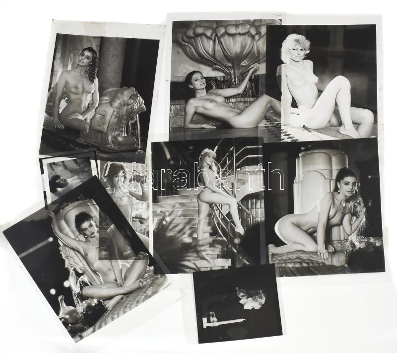 Leírás: Erotikus nyomdai levonóképek (közte Playboy magazin "Miss June" képe), össz. 9 db, változó állapotban, 15x13,5 cm és 40x30 cm közötti méretben