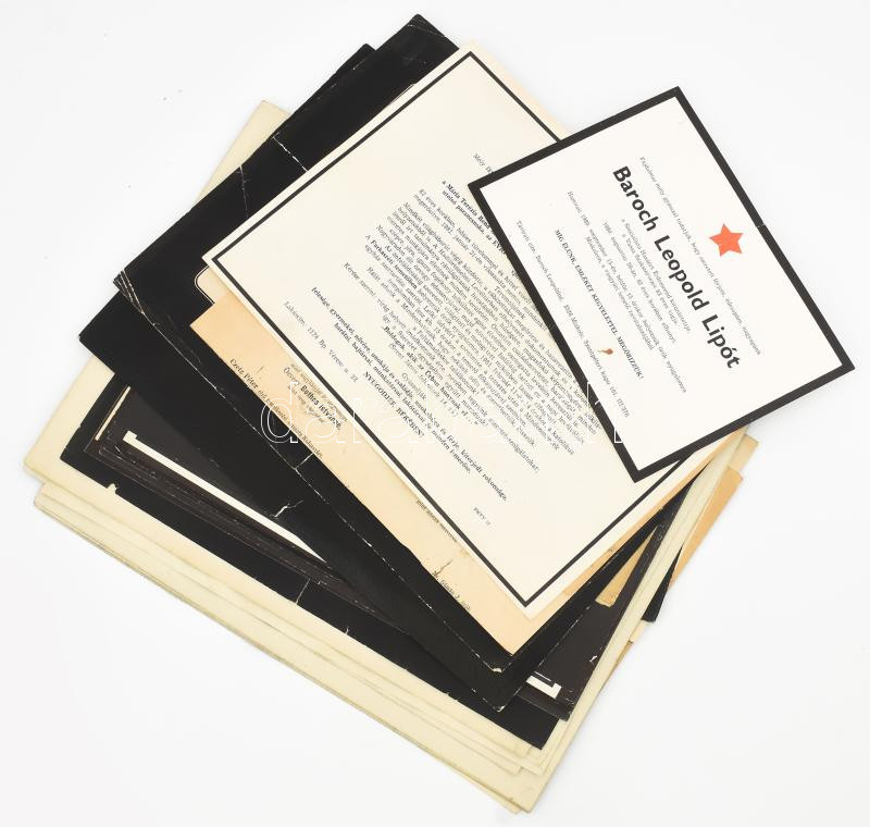 Leírás: Vegyes halotti értesítők, kb. 40-60 db, közte kitöltetlenek is