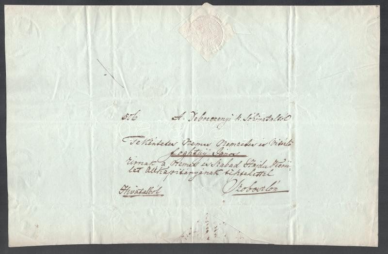 1843 Debreceni Sóhivatal hivatalos levele pénzküldés tárgyában https://www.darabanth.com/hu/484-Gyorsarveres/484.0/Mutargy-papirregiseg-egyeb/Okmanyok~1500022/1843-Debreceni-Sohivatal-hivatalos-levele-penzkuldes-targyaban~II3312296