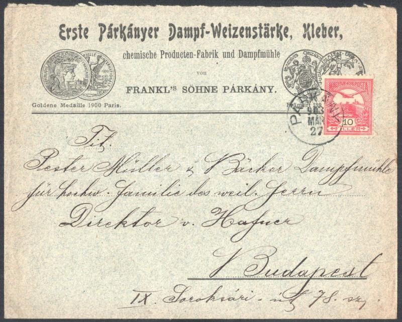 1903 Párkány (Štúrovo), Erste Párkányer Weizenstärke, Kleber und chemische Producten-Fabrik fejléces levélpapírjára írt, német nyelvű üzleti levél + fejléces boríték