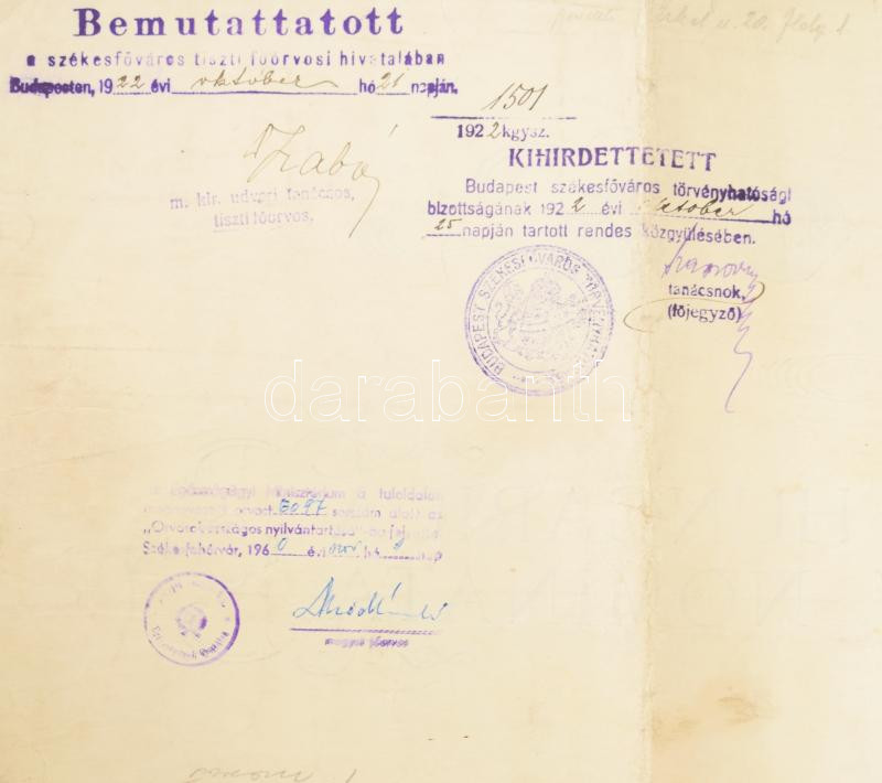 1922 Orvosi diploma Dr. Kádár Mihály nőgyógyász részére, hajtott https://www.darabanth.com/hu/484-Gyorsarveres/484.0/Mutargy-papirregiseg-egyeb/Okmanyok~1500022/1922-Orvosi-diploma-Dr-Kadar-Mihaly-nogyogyasz-reszere-hajtott~II3314794