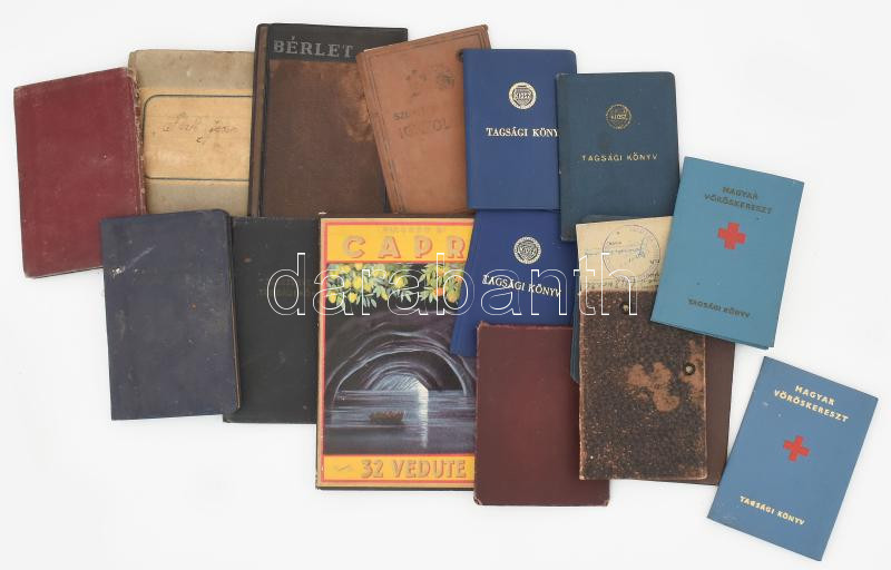 Vegyes igazolványok, tagsági könyvek, közte két üres tok és egy Capri képes leporelló is, össz. 17 db