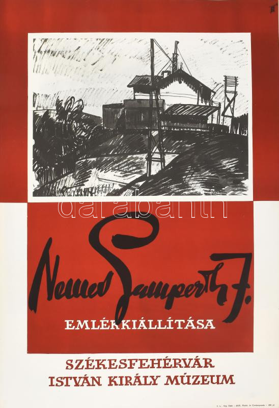 1963 Nemes Lampérth József emlékkiállítása, István Király Múzeum, Székesfehérvár, plakát, ofszet, papír, megjelent 300 példányban, Plakát- és Címkenyomda, hajtásnyomokkal, 59,5x46,5 cm