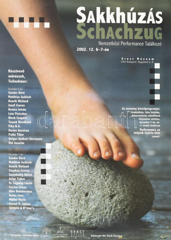 2002 Sakkhúzás-Schachzug, Nemzetközi Performance Fesztivál, résztvevők: Block Csoport, Bukta Imre, feLugossy László, Szirtes János, Szombathy Bálint, stb. plakát, ofszet, papír, 47x34,5 cm.