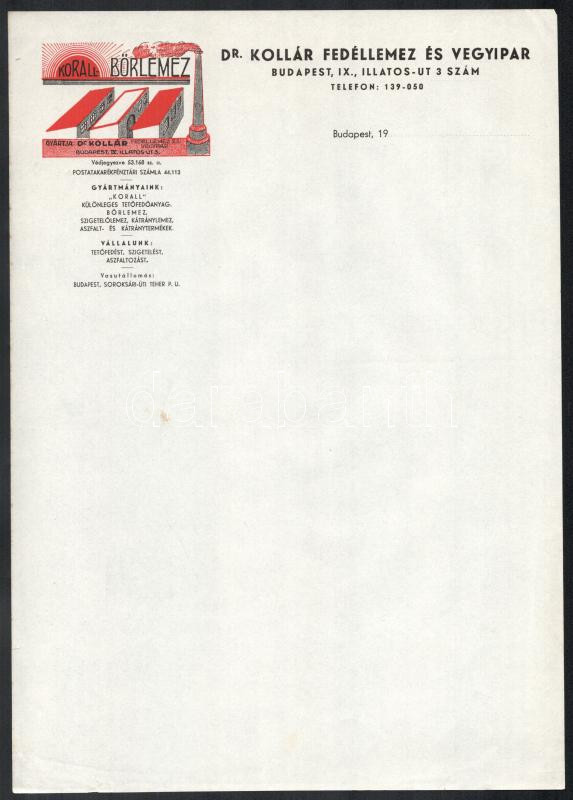 cca 1920 Dr. Kollár Fedéllemez és Vegyipar kitöltetlen fejléces papírj... https://www.darabanth.com/hu/484-Gyorsarveres/484.0/Mutargy-papirregiseg-egyeb/Reklam~1000002/cca-1920-Dr-Kollar-Fedellemez-es-Vegyipar-kitoltetlen-fejleces-papirja~II3246933
