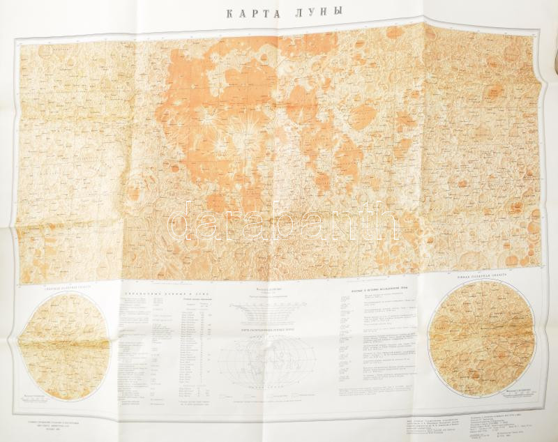 1985 Hold térkép, orosz nyelven, hajtott, 62x96 cm. https://www.darabanth.com/hu/484-Gyorsarveres/484.0/Mutargy-papirregiseg-egyeb/Terkepek~1000010/1985-Hold-terkep-orosz-nyelven-hajtott-62x96-cm~II3312760