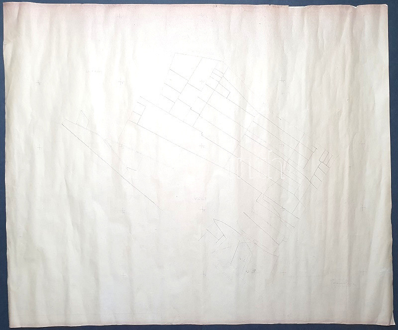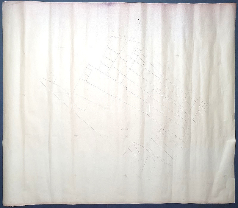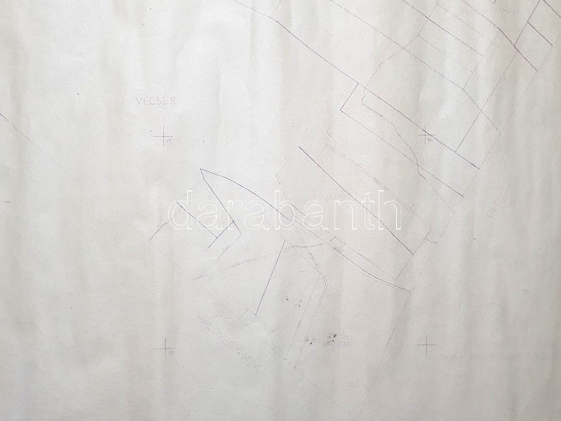 [Térkép] Vecsés község és külterületének átnézeti vázlata. Stencilezett térkép (1957) Budapest, 1957. [ny. n.] Stencilezett térképmásolatok, mérete 660x750 mm egy 750x865 mm méretű térképlapon (2 példány). 1957. VIII. 6-i dátumozású térképünk a Pest vegyei Vecsés község külterületeit, dűlőfelosztását ábrázolja. Ebben az időben a vecsési termelőszövetkezetek még önállóan gazdálkodtak, az évtized végén olvadtak be Pest megye meghatározó jelentőségű mezőgazdasági vállalatába, az Alagi Állami Gazdaságba. Térképünkön a döntően zöldség- ás gyümölcstermesztésre szakosodott dűlők kiosztása, a halvány feliratozás egyes helyeken mutatja a termelési ágakat (káposzta, szőlő). Térképünk közepén Vecsés belterülete foglalja el, ennek utcahálózata iránt mezőgazdasági térképünk nem érdeklődik, ám dokumentumunkon Vecsés kül- és belterülete nem sokban tér el mai határaitól, a főutak közül térképünkön jól kivehető a Vecsés belterületének északi határán enyhén megtört ívben Szolnoknak tartó 4-es főút, a belterület déli határán az igen közeli Gyál határa (Térképünk Halomegyháza néven tünteti fel Gyál északi részét). Térképünk keleti határát, nagyjából a mai M0-s autópálya mentén Üllő határa található, fontos vízrajzi részletet árul el a Gyáli-csatorna kanyargó folyása. A vecsési határ északi részén elterülő dűlők helyén ma már nincsen mezőgazdasági terület, ez a tájék a Ferihegyi repülőtér 2. kifutópályájának ad helyet. Északabbra az ecseri határ (Ecser belterülete ma is jócskán távolabb esik), illetve Budapest XVII. és XVIII. kerületének határa. Dokumentumunk másolat, melyen a lényegi adatot jelentő dűlőfelosztás, egyes utak, árkok és vízfolyások jól kivehetőek, ám a feliratozás és a készítők hitelesítő aláírása elhalványodott. Jó állapotú térképlapok (2 db).