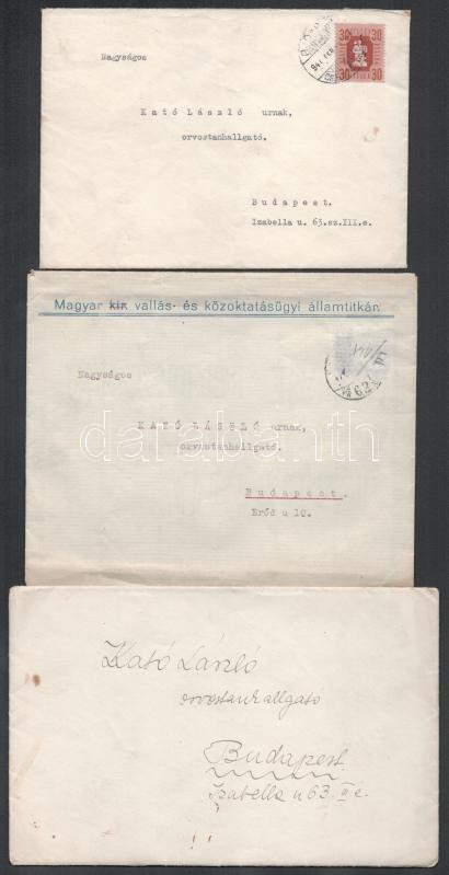 Leírás: cca 1946-47 2 db szerelmes levél egy orvostanhallgatóhoz, feltehetően a Vallás- és Közoktatásügyi Minisztérium államtitkárától, 3 db borítékkal