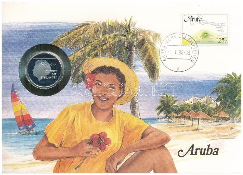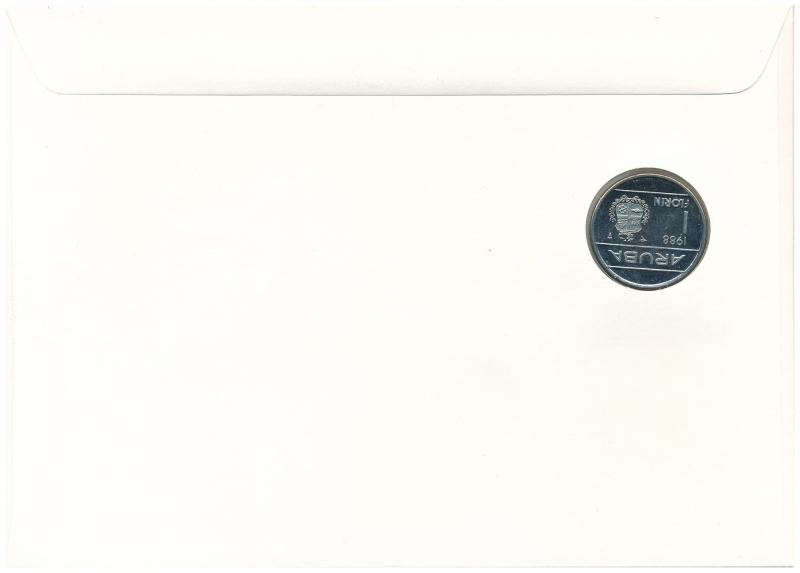 Aruba 1988. 1Fl Cu-Ni "Beatrix" bélyeges érmés borítékon, német nyelvű ismertetővel T:AU (eredetileg PP) Aruba 1988. 1 Florin Cu-Ni "Beatrix" coin letter with stamp and German description C:AU (originally PP)