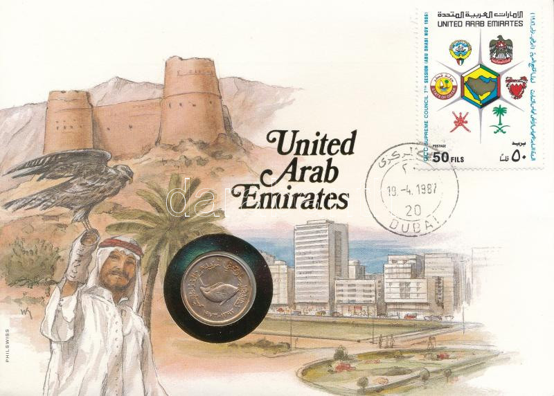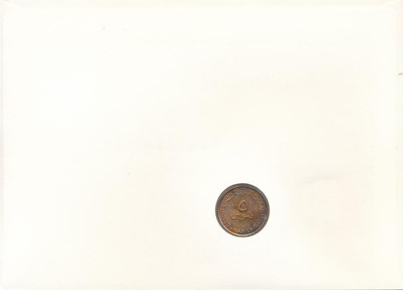 Egyesült Arab Emirátusok 1974. 5f bronz felbélyegzett borítékban, bélyegzéssel, német nyelvű leírással T:AU patina