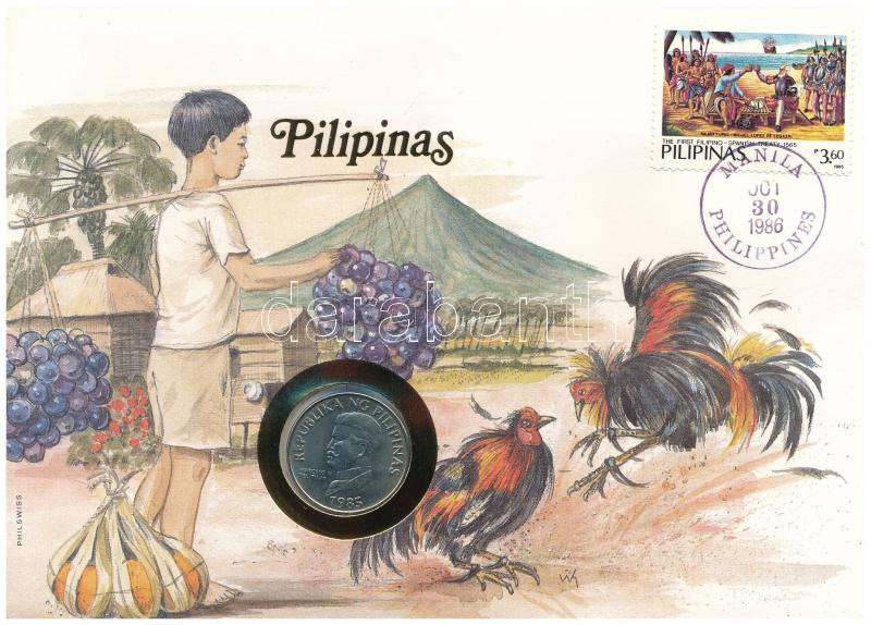Philippines 1985. 50 Sentimo Cu-Ni in envelope with stamp, cancellation and a prospectus in german C:AU