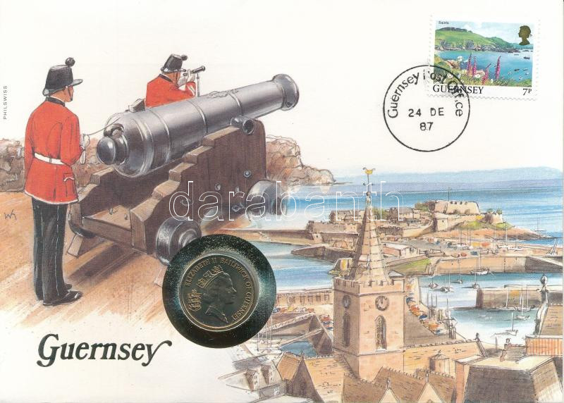 Guernsey 1987. 5p Cu-Ni felbélyegzett borítékban, bélyegzéssel, német ...