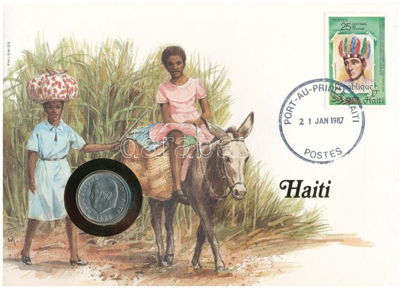 Haiti 1975. 10 Centimes in envelope with stamp and cancellation, with German description C:UNC