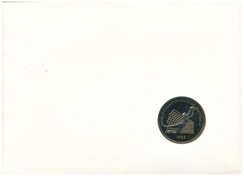 Jamaica 1982. 1 Dollar Cu-Ni "World Championship of Football" non-circulating commemorative coin in envelope with stamp, cancellation C:UNC