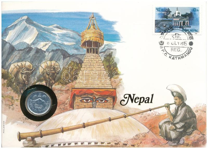 Nepal 1975. 5 Paisa in envelope with stamp and cancellation, with German description C:XF