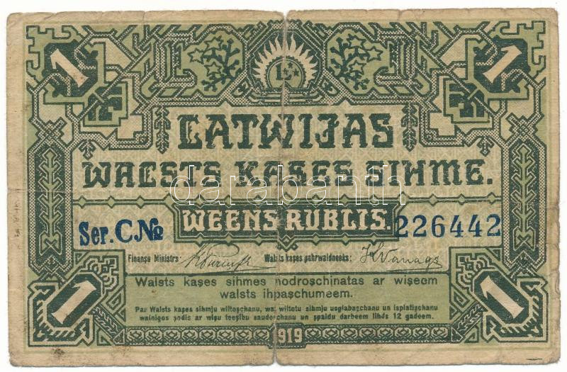 Latvia 1919. 1 Rublis C:VG tear... https://www.darabanth.com/hu/484-Gyorsarveres/484.0/Numizmatika/Kulfoldi-bankjegyek~500014/Lettorszag-1919-1R-TVG-beszakadasok3Cbr-3E-Latvia-1919-1-Rublis-CVG-tears3Cbr-3E-Krause-P231~II3261129