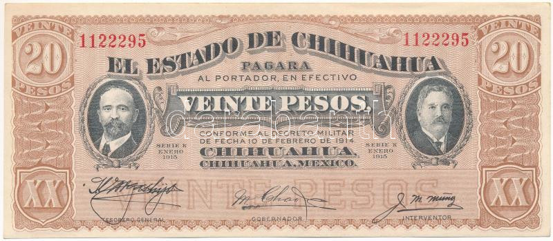 Mexikó / Forradalom / Chihuahua 1915. 20P hátoldalán fekete felülbélye...